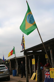 O local da tough guy é uma fazenda muito autentica com um cenário cuidadosamente montado para receber loucos do mundo todo. Chegando já fui recepcionada pela bandeira do Brasil, hasteada em alguns obstáculos da prova. Toda e qualquer água do circuito se encontra congelada como vocês podem ver nas fotos abaixo.