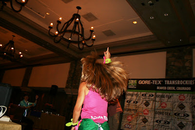 Estrategias muito bem elaboradas, a Chris iria sem mochila, só com uma garrafinha de mão, eu iria com todos os obrigatórios e iria rebocar ela desde o comeco. E iríamos ficar de olho na dupla das quartas colocadas porque sabíamos que mesmo se chegássemos depois, ainda tínhamos a vantagem de 17 minutos. E claro tentar largar no bolo da frente porque sabíamos que isso fazia diferenca para entrar na trilha e não pegar muito transito. Largamos no centro de Vail uma estacão de esqui que no verão fica charmosa e florida. Ficamos na cola das primeiras e segundas colocadas na nossa categoria e diferente do quarto dia conseguimos manter uma distancia visual, elas corriam, a gente corria, andavam a gente andava. E eu de oho no relogio sem acreditar que já se passara uma hora de prova e a gente ainda na bota. Para nossa alegria olhávamos para trás e não víamos as nossas "inimigas" que são muito legais competicão saudável. Com 1:10h de prova as duas duplas que corriam juntas encostaram para fazer alguma coisa, e nós passamos e falamos ok! vemos vocês daqui a pouco. Nesse momento olhei no relógio porque queria escrever no relato qunto tempo a gente tinha ficado em primeiro lugar...nem que fosse por 5 minutos, 10 minutos, um pouco adiante vimos Michelle ( a rapunzel da foto que está também na foto junto com o Dean Karnazes) ela ganhou o primeiro ano, e pegou podium alguns dias nessa edicão... No CP1 fizemos uma transicão muito rapida, mal paramos e ai passamos ela, claro que não durou muito tempo, mas foi o tempo suficiente para realizarmos que estávamos num dia bom, num dia muito bom. No downhill eu comecei a pensar como seria se conseguíssemos manter o ritmo e CAPOTE tomei um tombo, só ouvi a Chris perguntando se estava tudo bem...Ok Deus entendi o recado! Mais para frente de novo outro tombo, foi o suficiente para perceber que eu devia focar no minuto e parar de ficar sonhando acordada. De repente dois CP mais tarde na ultima subida percebemos que já estávamos na liderenca por mais de 3hs e olhamos para trás e boom! Lá estavam as líderes da nossa categoria. Caraca!! Tão perto do final eu já com aquele gostinho na boca...a Chris falou "Puxa Lou!" e eu rebocando todas as subidas e retas quase morrendo lembrei do Caco falando: "Quando você estiver morrendo grita Selva que te dará mais energia! " Pois bem Selva foi, e finalmente chegamos no ultimo downhill, elas podiam chegar na gente ainda, soltei a Chris e corremos mais rápido do que nunca, e aí eu avistei a chegada. Não podia ser, ultimo dia, ultimo estágio a gente no ponto mais alto do podium, ganhando respeito de todos os atletas de elite que hoje competiram lado a lado com a gente. Duas mulheres que ha um ano decidiram que fariam a prova juntas e a primeira vez que correram juntas foi no primeiro dia de prova, ha cinco dias at'ras. A lembranca do dia de hoje ficará intocada na minha cabeca. O dia perfeito, na ultima descida chorava tanto que não conseguia nem respirar. O Rafa e toda a organizacão esperavam a gente na chegada, supresos e muito felizes! Agora tem a festa o ultimo dia e temos dois podiuns: o do dia primeiro lugar e na geral da nossa categoria terceiro lugar!!!! Mais uma vez queria agradecer à todos que acompanharam, torceram, mandaram energias positivas. Todos os selváticos, Caco e Marcio pelo treinamento, Mami, Papi, Tom, minha Vó. Rafa sem você nos CP e ajudando a gente de todo jeito que podia, com coca colas não seria possivel!Chris que não para de falar que"We are not the under dog anymore, we are elite!" porque por mais que ela dissesse que eu sou forte, eu dizia :"Não Chris, sou apenas mais nova, minha meta é chegar nos 50 com a sua forca! Valeu". Todos, todos, todos vocês muito obrigada. O Brasil realmente conquistou a Transrockies Run 2009!!!! Não só no podium, mas na danca, risada, energia e diversão! Valeu!